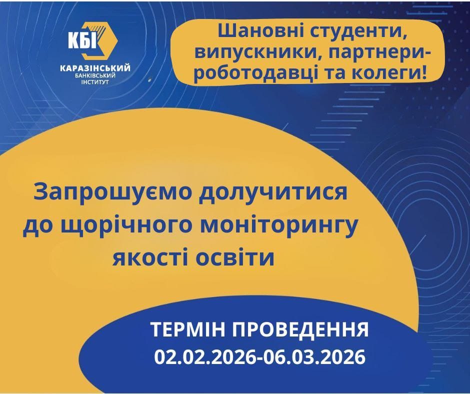 ННІ «Каразінський банківський інститут» постійно працює над тим, щоб наші освітні програми відповідали вимогам часу та реальним запитам ринку праці. Ваша думка – це головний інструмент для нашого вдосконалення 💡